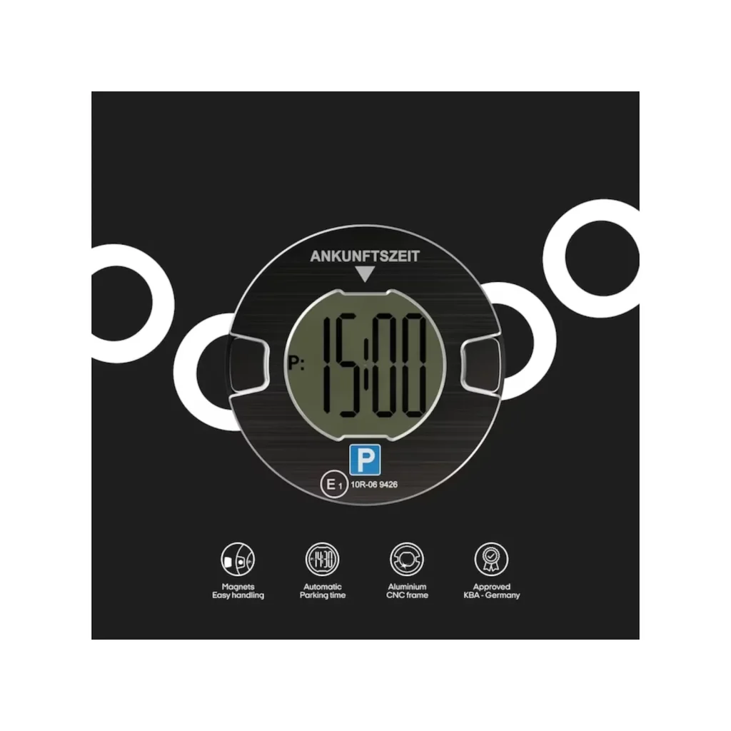 OOONO® Park elektrische Parkscheibe fürs Auto I vollautomatische Parkuhr schwarz
