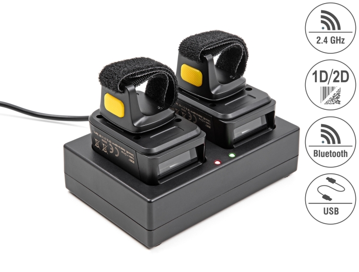 Delock Ringbarcode Scanner 1D und 2D mit 2,4 GHz oder Bluetooth (2 Stück)