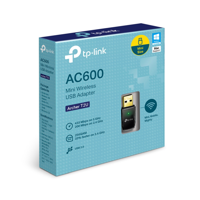 – Package Contents: Wireless Adapter Archer T2U, Resource CD, Quick Installation Guide