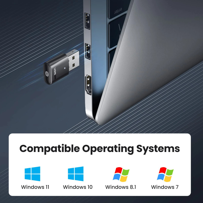 – UGREEN USB Bluetooth adapter kompatibilan je sa sustavima Windows 11, 10, 8.1 i 7, nudeći Bluetooth funkciju za slušalice, zvučnike, tipkovnice, miševe, kontrolere, pisače, mobilne telefone i još mnogo toga.